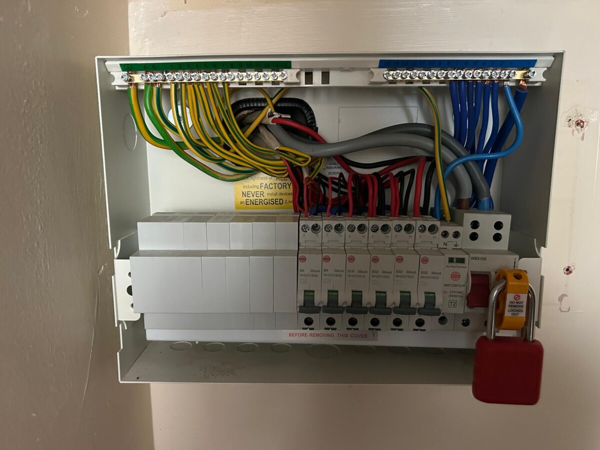 In many renovation or extension projects, upgrading the consumer unit becomes necessary. Modern kitchens, electric showers, EV chargers and other high-demand appliances place far greater load on electrical systems than older installations were designed for. Installing a modern consumer unit ensures the electrical infrastructure can safely support these additions.